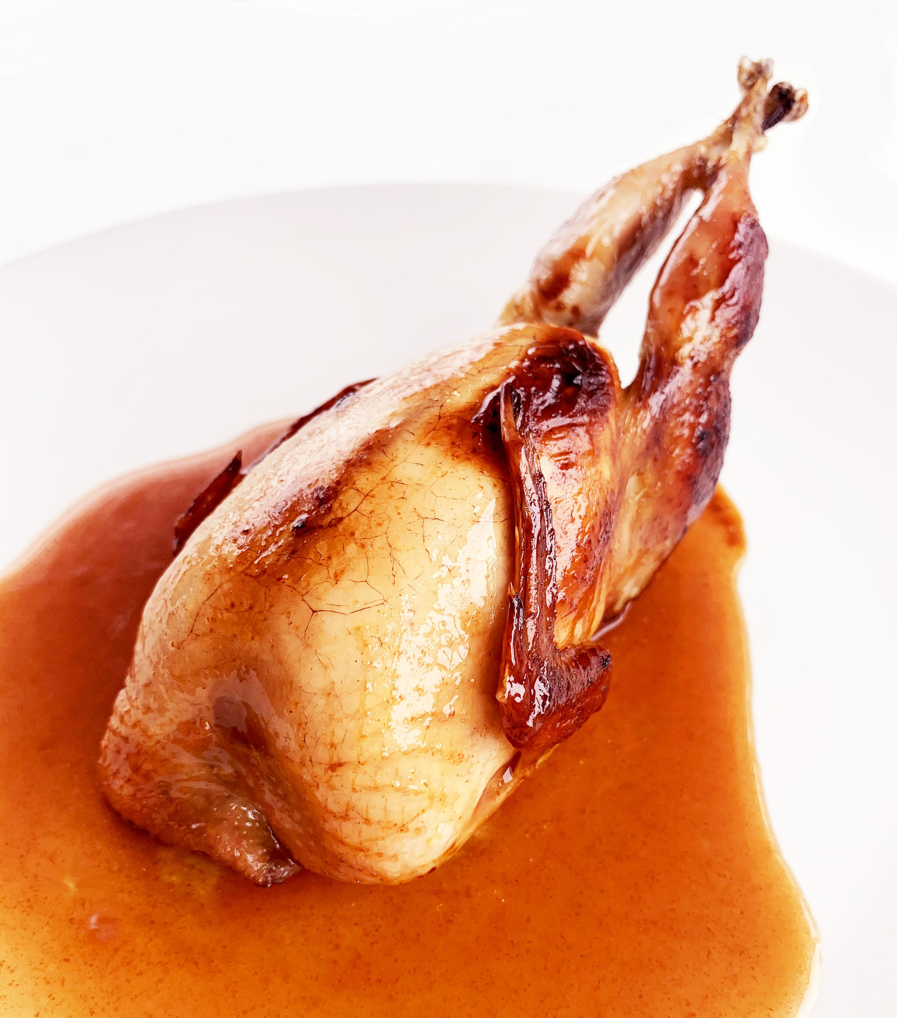 Description: Caille farcie au foie de volaille, au porto, à l'érable, à la pomme & aux noix de Grenoble \ 1 unité