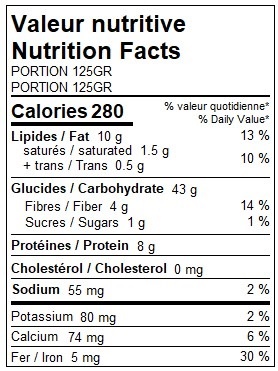 Ingrédients: Eau, pâte alimentaire, huile de canola, beurre, herbes.