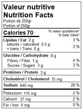 Mode d'emploi: Enlever la pellicule de plastique. Verser le contenu dans un plat allant au micro-ondes. Faire chauffer au micro-ondes à intensité élevée de 3 à 5 minutes.