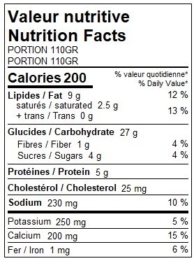 Contient: Lait, oeufs, blé, soya, peut contenir des sulfites.